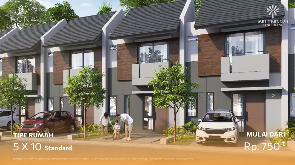 Cluster Rona hadir dengan 2 tipe ukuran rumah yaitu tipe 5×10 ( standard & premium ) dan 10×10. Rumah dijual dengan harga mulai 750 Juta ( Inc. ppn ).
